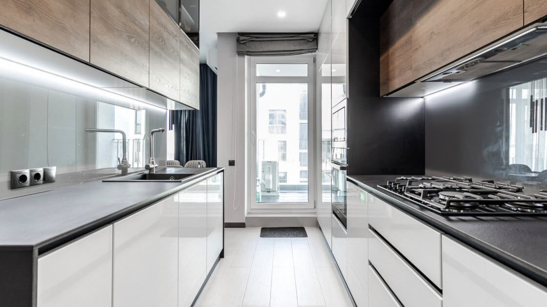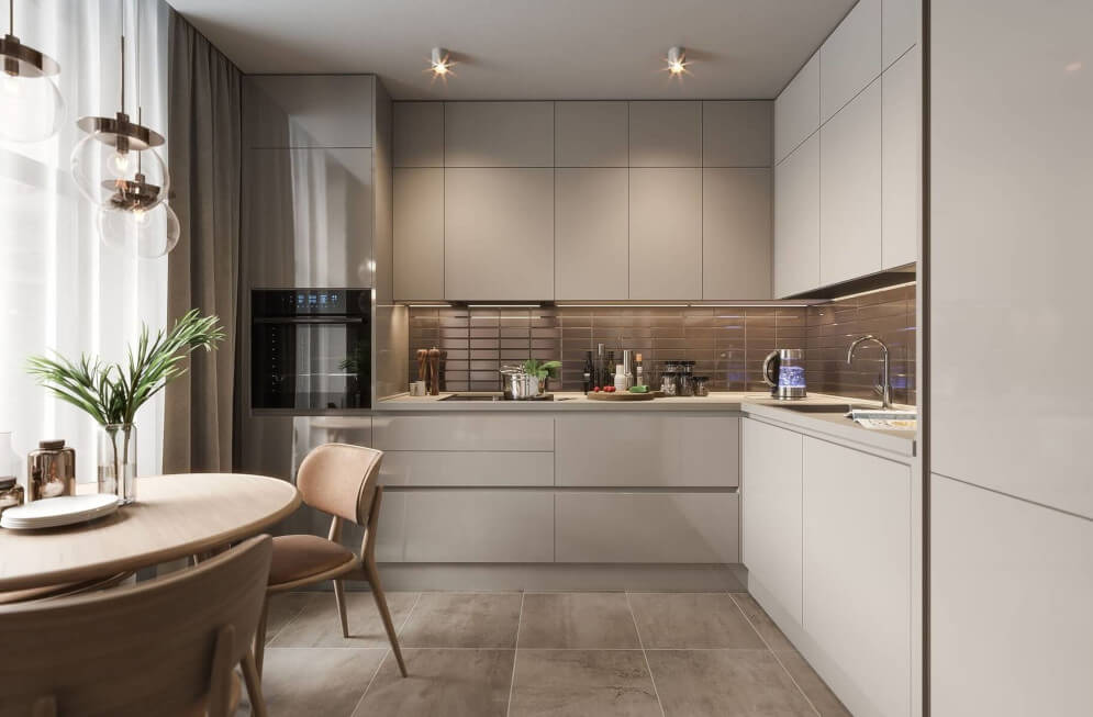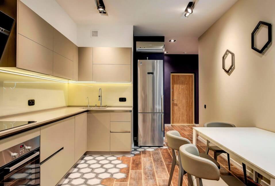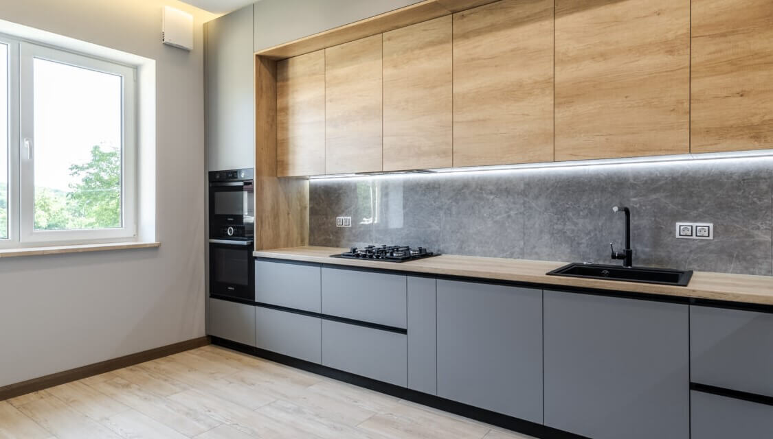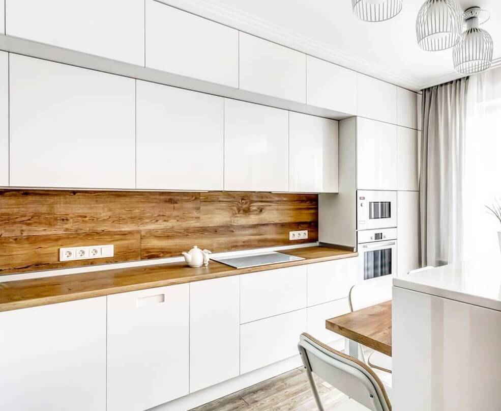 Для кухни следует выбирать практичные материалы, которые хорошо переносят влажность, перепады температуры, легко очищаются от загрязнений и выдерживают механические нагрузки. Выбирать вы можете в зависимости от бюджета - более дорогие или бюджетные материалы. Наш специалист проконсультирует вас.