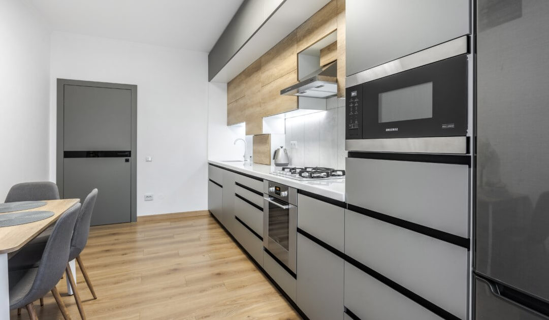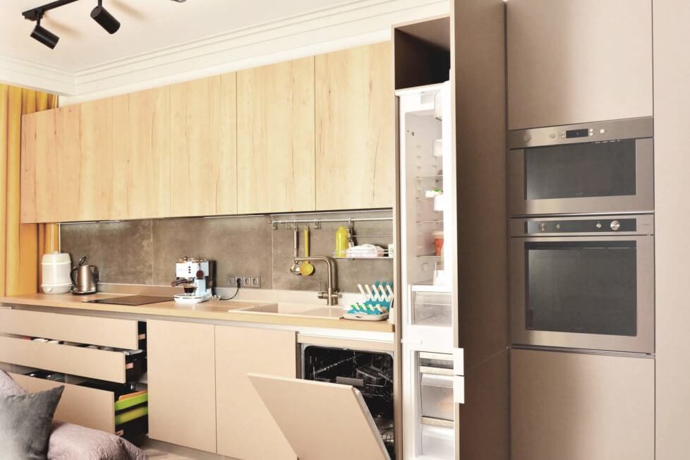 Да, на этапе установки мастера размещают встраиваемую технику и выполняют ее подключение. Если вы решите заказать кухню по индивидуальным размерам, вы можете не волноваться по остальным вопросам, так как мастера нашей компании помогут их решить.