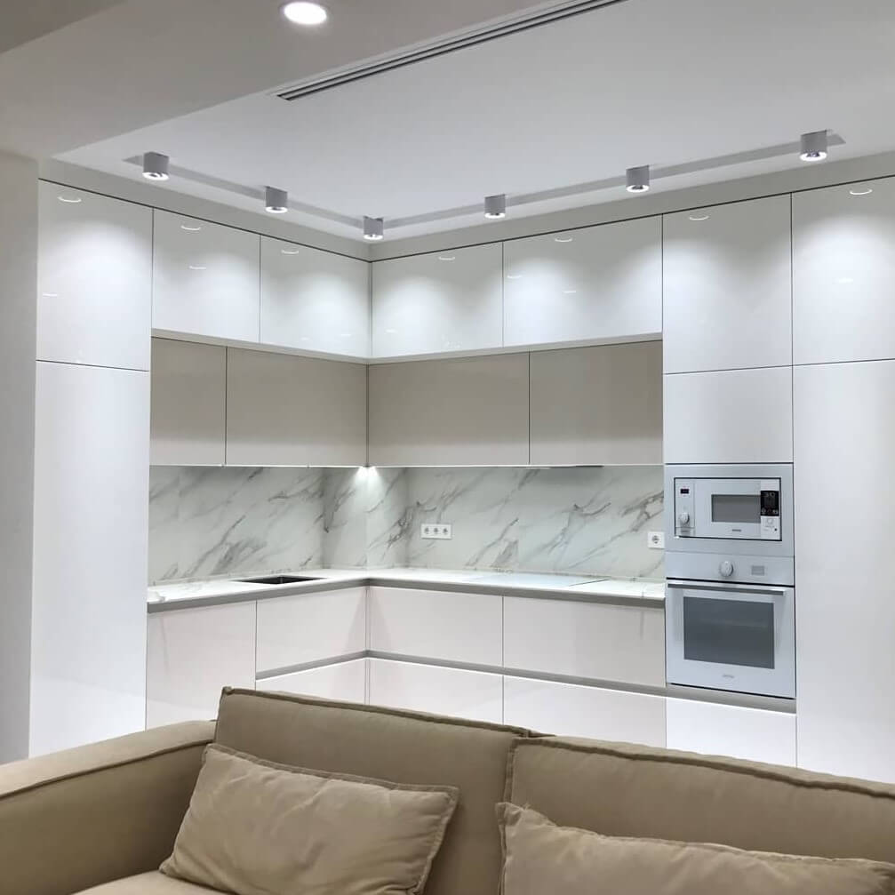 Стоимость озвучивается после подготовки проекта на основании данных, полученных на замере, согласования материалов, наличия или отсутствия встраиваемой техники и прочих нюансов.