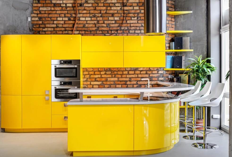 • Яркая кухня для интерьера в стиле лофт, впечатляющее решение