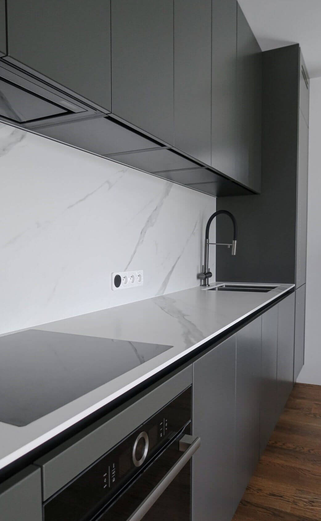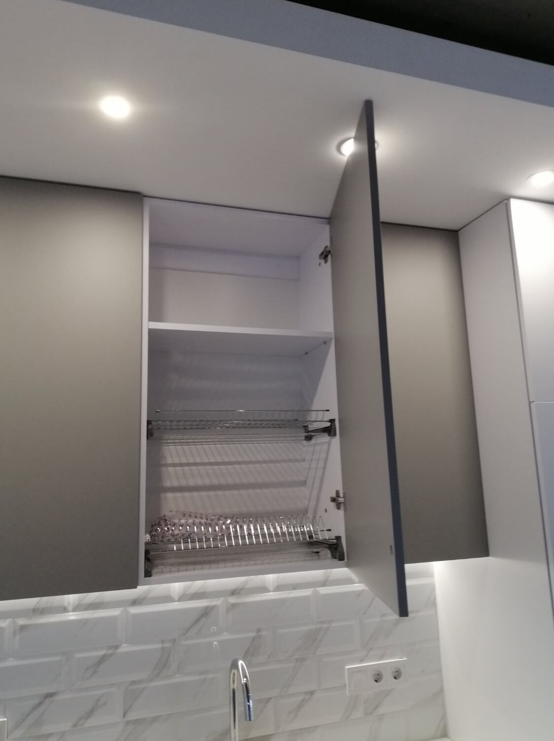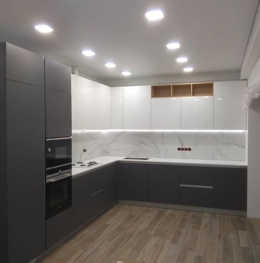 Пересмотрели много референсов перед тем, как выбрать кухню по цвету и стилю. В представлениях было одно - яркое и броское, но в итоге остановились на сдержанном сочетании белого и серого. Спасибо большое специалисту, который с нами работал по дизайну и напомнил, что цвет быстро надоедает, а эта палитра не напрягает и всегда актуальна. Кухню сделали аккуратно, доставили в назначенное время и собрали под ключ. Довольны с мужем, что обратились именно в эту компанию.