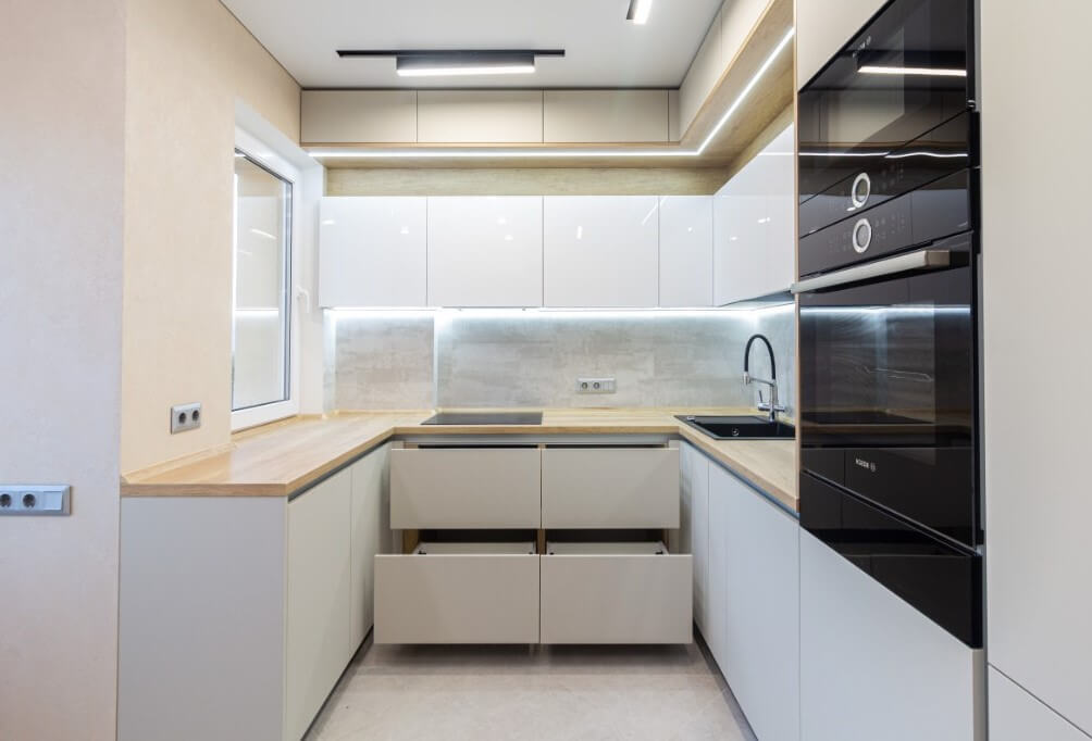 Заказывали мини-кухню для студии. Честно скажу, что очень волновалась, как будет выглядеть кухня и что в ней получится разместить - места ведь совсем мало. На мое удивление специалист при разработке проекта выдал столько предложений, какой может быть кухня. В итоге у нас есть даже встроенная посудомойка, не говоря уже о стандартных вещах - плите, духовке, шкафах для хранения. Прекрасное исполнение кухни и установка от все той же компании. Рекомендую!!!