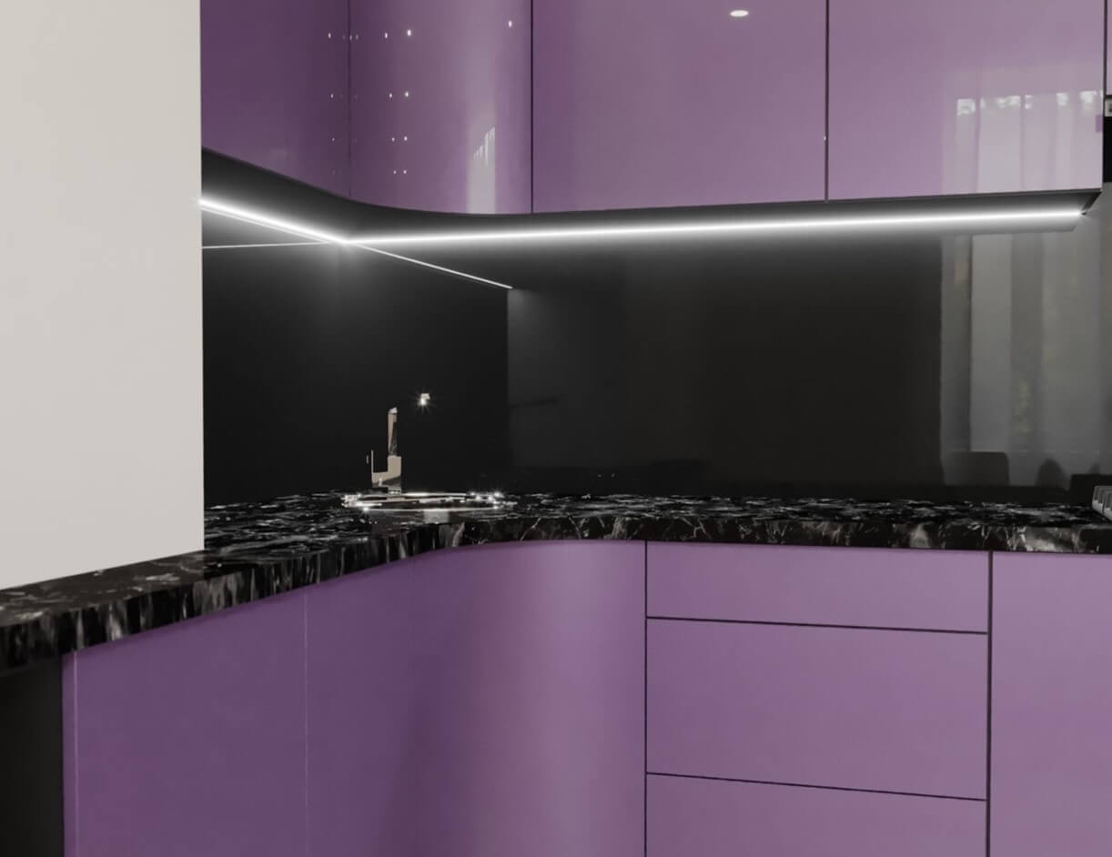 Вот все привыкли, что кухня должна быть светлая, а нашей семье хотелось необычности в дизайне. Как здорово, что ваши дизайнеры наши такой модный вариант для нас! Сначала я не поверила глазам - глянцевый фиолетовый, такого не видела в жизнь! Но потом поняла, что это то что мы и искали! Очень понравился сервис и результат работы мебельщиков. Собирали у нас, поставили без нареканий. Огромное спасибо!!!